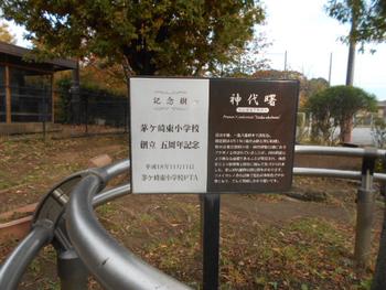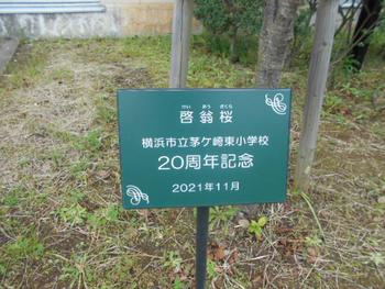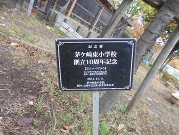 茅ケ崎東小学校の創立記念日は11月11日です。創立記念に関するものを探してみると、校庭に記念樹がありました。すべて桜の木なのですが、種類が違います。そのため、少し長い期間、趣の違う桜の花を楽しむことができます。銘板を見ると、それぞれPTAや地域の方から寄贈されたものです。皆さんの学校に対する思いを感じています。