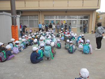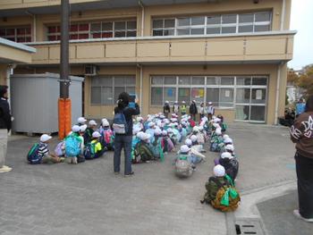 幼保小交流「シャボン玉遊び」の第2回目は、茅ケ崎保育園、つくし保育園の子どもたちが来ました。1年生の子どもたちが声をかけて、楽しく活動していました。