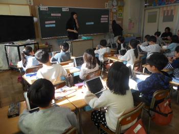 4年生の教室を通りかかると声をかけられ、今総合で取り組んでいることについて説明をしてもらいました。それぞれがテーマを決め、そのテーマに向けて取り組んでいます。