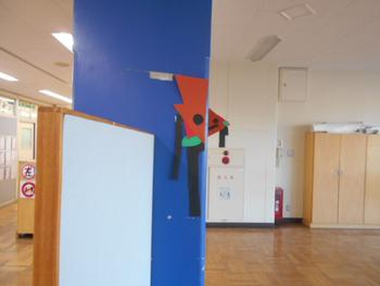 6年生の図画工作の学習で、「ここから見ると」という単元があります。場所の奥行きを生かして楽しく見えるものを作っていきます。学校の中のいろいろなところに作品が増えてきました。通りかかる子どもたちも「あれっ?」と立ち止まります。学習を生かしていろいろな子どもたちが楽しむことができます。