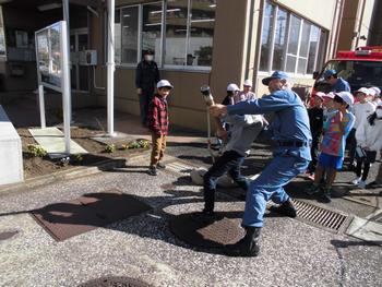 消防士さんや消防団の方の仕事の内容を教えていただいたり、