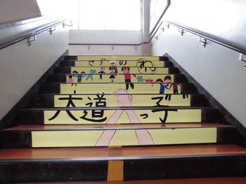 6年生の子どもたちの、大道小や下級生を思う温かい気持ちに溢れた「階段アート」を、