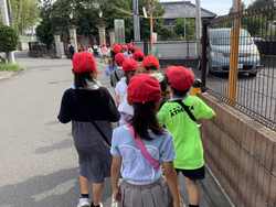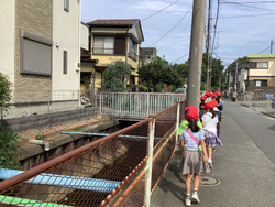 延期となっていたまちたんけんを、9月18日㈭に無事に実施することができました。子どもたちは、心待ちにしていたようで、朝はウキウキしながら準備していました。ログハウスまでは、大門川の横を通ります。