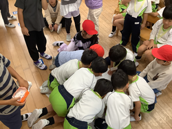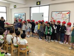 近隣幼稚園の園児と交流を行いました。幼稚園児に「大門小学校のことを知ってもらいたい」という想いから、子どもたちは学校探検で学んだことをもとに作った「大門小学校クイズ」や「大門小すごろく」を、披露しました。小学生、園児ともに笑顔でかかわる姿が多く見られました。