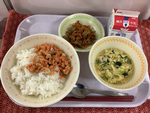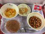 食事の盛り付けは給食当番で慣れているので、係になった子ども達は、エプロンをつけて張り切って準備をしていました。野菜が残ってしまったので、からあげとセットにして残食がないようにおかわりキャンペーンタイムがあり、楽しく食事ができました。