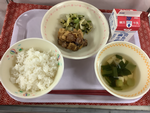 ごはん・牛乳・ひじきごはんの具・魚のから揚げ・沢煮椀