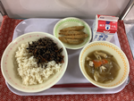 はいがごはん・牛乳・ひじきごはんの具・きびなごフライ・けんちん汁