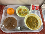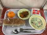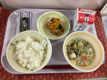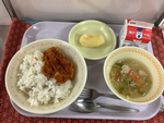 麦ごはん・牛乳・チキンライスの具・野菜スープ・りんご