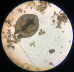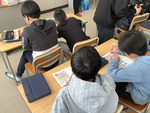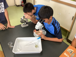顕微鏡を使って、学校の池や田んぼの水の中にいる生き物を観察しました。タブレットで上手に写真を撮りながら観察力ードにまとめることができました。
