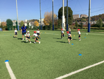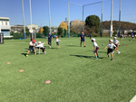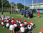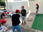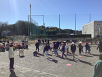 1~6年生の縦割グループで「前期なかよしタイム」が行われました。学校のお隣のラグビー場をお借りして、全校で行事をしました。開会式の後、グループごとに分かれて先生たちのところへ行くと様々なミッションが出されました。ミッションはけん玉、フラフープ、ことばあてゲームなどで、体を動かしたり、頭を使って考えたりして、みんなでクリアをしていきました。活動を通して、グループで協力しながら、仲を深めることができました。