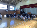 入学式は10時から体育館で行いました。欠席0人、全員揃って小学校生活をスタートすることができました。