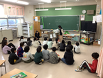 朝の読み聞かせの時間がスタートしました。今年度は月に1回火曜日に行います。写真は1年生の様子です。絵本を見ながら、ニコニコ笑顔で聞いていました。