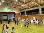 外運動クラブと中運動クラブは小中交流会をしました。中川西中学校のハンドボール部、バドミントン部の中学生たちが子ども達に優しく教えてくれました。