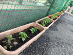 2年生は夏野菜を育てます。鉢に土を入れ、ミニトマトやナスなどの苗を植えました。その後はたっぷり水をあげました。成長が楽しみです。