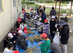 保護者の皆様、地域の皆様にもご協力いただき、無事に収穫ができました。稲はフェンスにかけて、乾燥します。10月末には5年生が脱穀・籾摺りをする予定です。