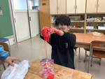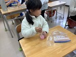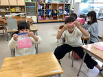 「シャボン玉を上手にとばそう!」というめあてのもと、自分たちでシャボン玉を飛ばす道具を準備し、シャボン液を作り、飛ばしてみました。いろいろ混ぜてみたら、思った以上に割れずに飛んで、校舎の上まで上がりました。次は、さらに道具を工夫して、すごいシャボン玉を作るぞ!