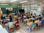 毎年、4年生を対象に交通安全教室を実施しています。警察署の方からお話を聞いたり、動画を視聴したりして正しい自転車の乗り方について学習しました。自分自身の身を守るために生活の中で自転車の乗り方を気をつけていきたいと考える子どもたちの姿が見られました。