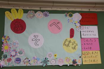 【2組の学級目標の掲示です。背面掲示板に貼っています。】