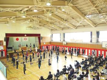 体育館にて卒業証書授与式を行いました。コロナ禍で例年と違う形での式でしたが自分たちが今できることを一生懸命行っている卒業生の姿を見ることができました。ご参加して頂いた保護者の皆様ありがとうございました。