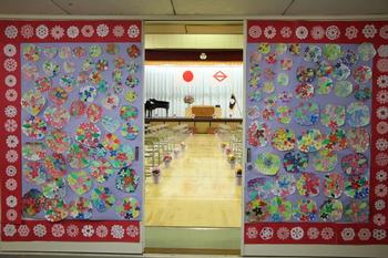 【離任式の様子】 【2年廊下の掲示板】