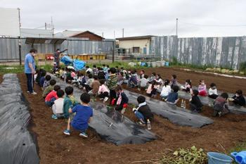 5月17日(月) 1・2年生畑にサツマイモの苗を植えました
