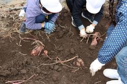 2年生はC棟横の畑でチューリップの球根をとっていました。