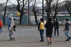 4年生は体育館でドッジボールをしていました。新しい学級の人たちと先生とで楽しく試合をしていました。力強くボールを投げていました。
