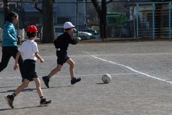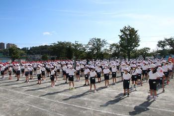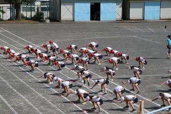 2校時目の体育は、3学級が校庭で体育。荏田小の校庭の広さのためか密にならずに体育学習ができます。