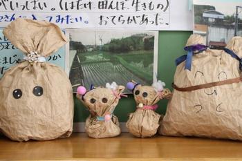 1年生の教室をのぞくと国語の時間。先生の板書を一生懸命に丁寧に書き写している姿がすばらしかったです。ノートの使い方、字の書き方を見てこの1年間の成長を感じました。また、4月に入学してくる新1年生に渡すアサガオの種の袋に一人ひとりがメッセージを書いていました。