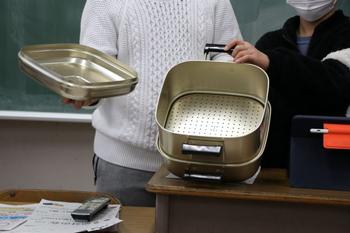 今日は5年1組で秋に校内の田んぼで収穫したもち米を使って「お赤飯」を作りました。家庭科室にあるむし器を使って調理をしました。1組の保護者の皆様にも参観していただき、お赤飯の試食もしました。来週は2組でも実施します。