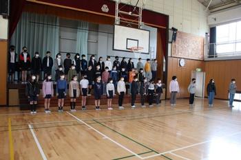 今日は令和4年度の最後の日。修了式と離任式をテレビ放送で行いました。修了式では、3年と5年の代表児童が今年度がんばったことを話してくれました。その後教室で担任からあゆみをもらいました。