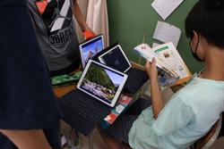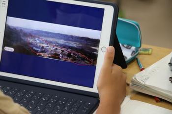 1年生の教室でも1年間の思い出をiPadで作成していました。1年生のICTスキルはすばらしいものがあります。