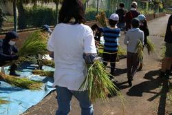 荏田小恒例の6年から5年への種もみの引継ぎをテレビ朝会の中で行いました。荏田はこれから米作りに向けて活動開始です!1年生は明日の給食の準備を教室で行っていました。