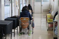 次の写真は2年生の教室での授業の様子です。2年生は国語で、登場人物の気持ちを考えて教科書に記入していました。