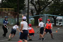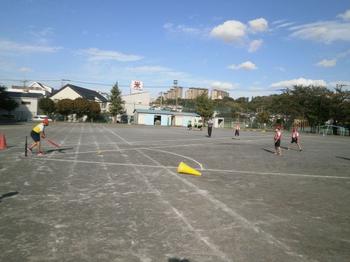 2年生の体育学習は校庭での活動。晴天の下楽しそうに活動していました。