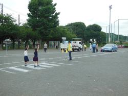 校庭で1年生は道路の歩き方、4年生は自転車の乗り方を中心に行いました、当日は、都筑警察署・交通安全協会などの関係機関の皆様方、校外委員・PTA役員の皆様方のご協力で開催することができました。2・3・5・6年生は教室で交通安全に関するビデオを見ました。