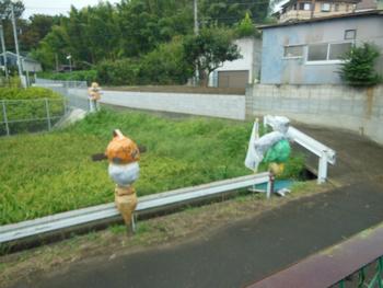 縦割りグループで案山子を作りました。各グループともよく考えられたユニークな案山子が完成しました。職員で昨日17日(火)の放課後に設置しました。来週の25日(水)は稲刈りです。