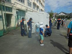 冬の乾燥する季節を考慮に入れた火災訓練を実施しました。校庭に避難した後に都筑消防署のご協力により煙体験をしました。