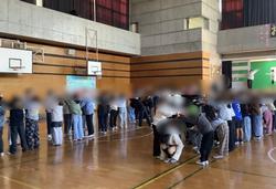 25日に神奈川運輸支局の方が来てくださり、体育館で車いす体験と視覚障碍者誘導体験が行われました。