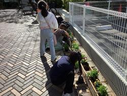 地域の方と協力して、えだきん商店街にお花を植える活動を行いました。