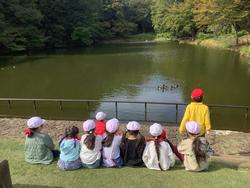 みんなで、だるまさんが転んだや鬼ごっこをしたり、池で泳ぐ鴨を見たり、お弁当を食べたり…楽しい素敵な時間になりました。