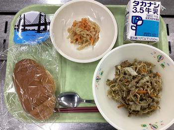 給食の焼きそばは、麺は油で揚げてから炒めた肉や野菜と和えて仕上げます。
