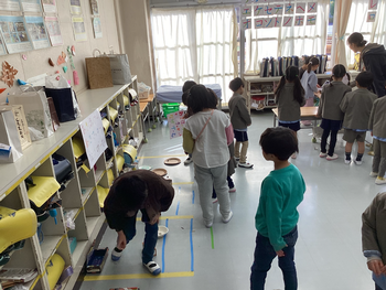 1年生は、近隣の幼稚園・保育園の年長さんを招いて秋遊びをしました。