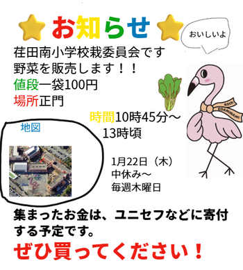 栽培委員会が育てた野菜を以下の日程で販売します。