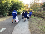 荏田高校や荏田南中学校の生徒と本校の3年生が一緒のグループを組んで、地域の清掃や緑道のチューリップ球根植えをしました。