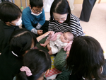 赤ちゃんとのふれあいでは「あったかい」「ふわふわだ」「ちゃんと、こっち見てる!」等々