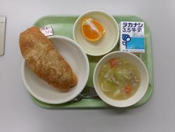 あげパン・牛乳・野菜のスープ煮・しらぬひ・チーズ