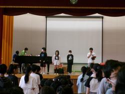 児童集会では、保健委員会が「けがの防止」について発表しました。