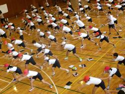 ソーラン節を5・6年生合同で練習しています。
