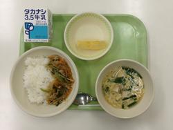 ごはん・牛乳・サンマー丼の具・にらたまスープ・りんご